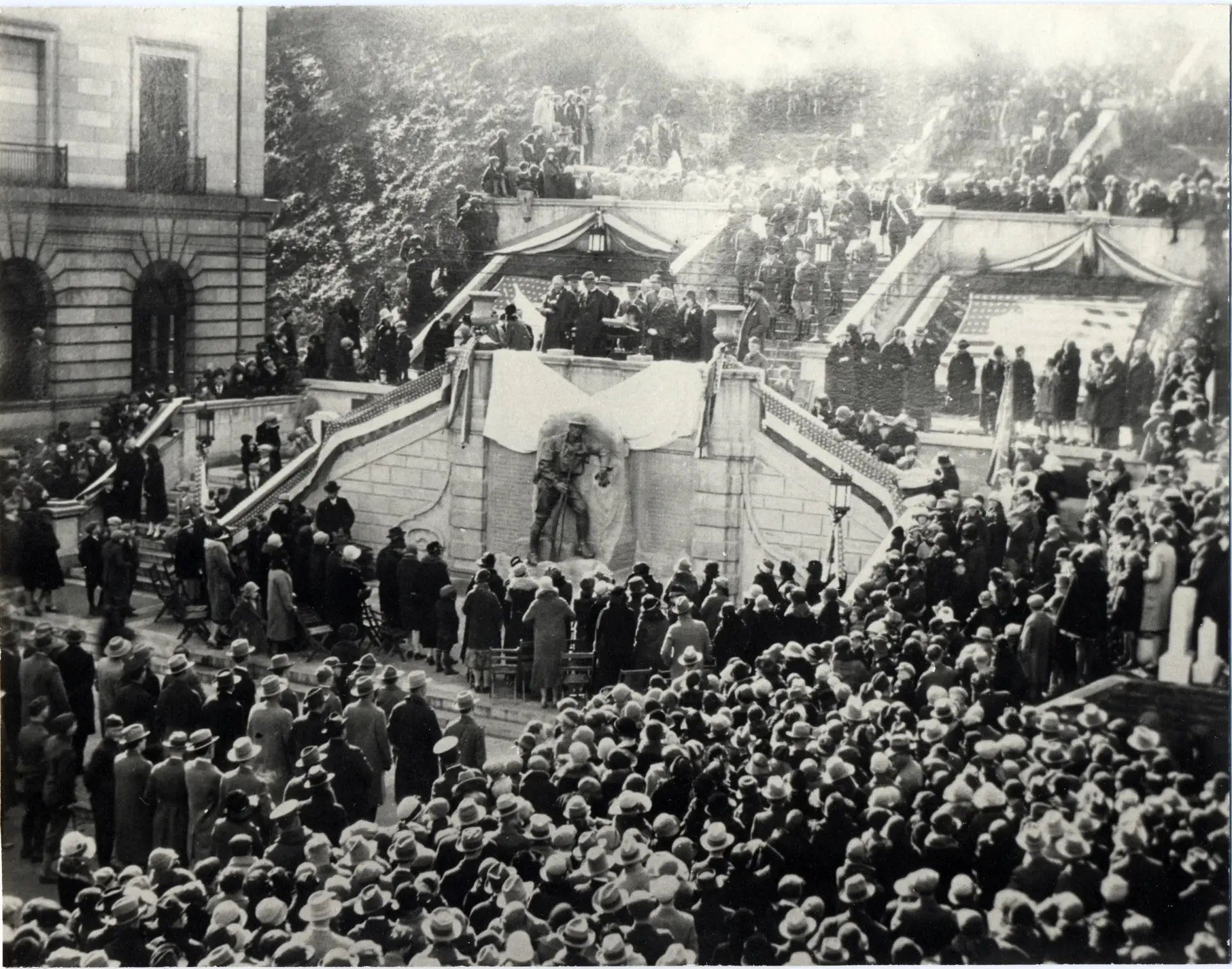 Unveiling and dedication of the Listening Post sculpture and memorial wall, Veterans Day, November 11, 1926