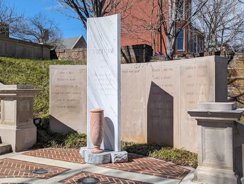 Lynchburg lost 27 men in Vietnam, and their names are listed on the monument. It was erected by the Vietnam Veterans of America, Chapter 196, in 1986 as a project for the city’s bicentennial anniversary.