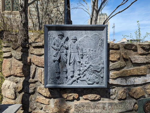 Sculptor Charles Keck was hired by the City to create a monument to those killed during World War I (or “the Great War”). His bronze sculpture The Listening Post (or The Doughboy) was unveiled on Veterans Day in 1926 at the base of Monument Terrace.