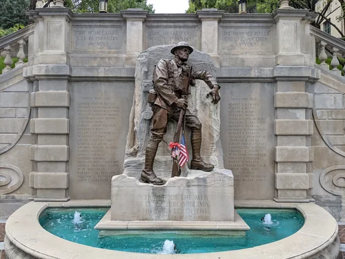 On May 30, 1883, Lynchburg experienced a tragic fire in which five firemen were killed. Forsberg’s simple fountain was redesigned to add a fireman’s statue as a memorial to the men who lost their lives. This began Monument Terrace’s long history of honoring those from Lynchburg who gave the ultimate sacrifice.