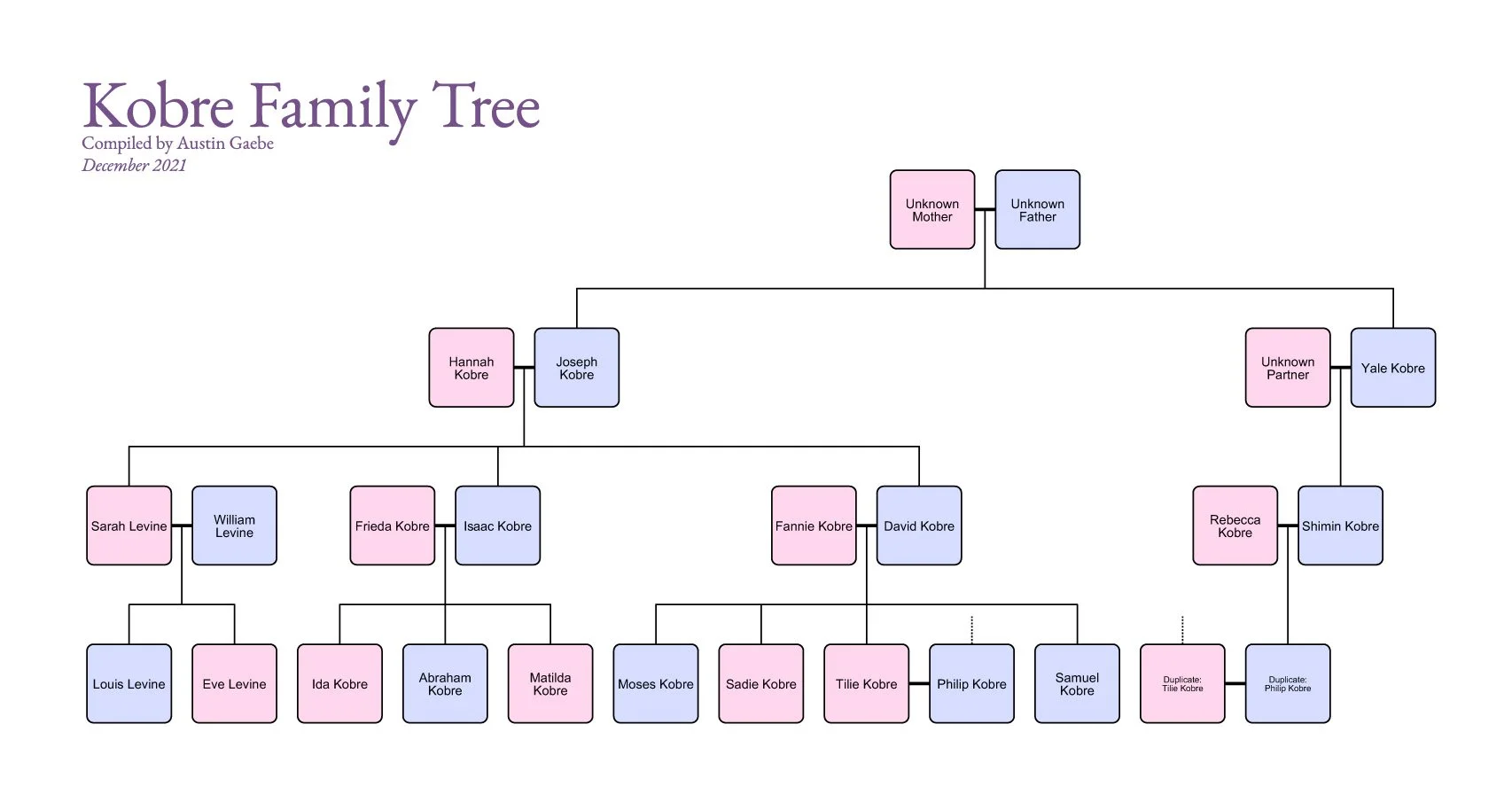 The first member of David Kobrinsky’s family to make the over 4,700-mile journey to Lynchburg, Virginia, was his older sister Rachel, who also went by Sarah Rebecca. In 1894, Rachel and her son Louis joined her husband William Levine, who had immigrated a year earlier. They settled in Lynchburg by 1897 with William operating a shoe repair shop on Twelfth Street behind First Baptist Church, where the family also lived. William was one of the 23 original congregants of what would eventually become the Agudath Sholom Synagogue, Lynchburg’s first and only Jewish house of worship. As Rachel and Louis settled in the United States, the synagogue’s congregation raised enough funds to purchase a permanent house of worship on Church Street. In 1903, the couple’s daughter Eve was the first of the Kobrinsky lineage to be born in the United States as an American citizen. Unfortunately, Rachel died of complications from childbirth, making her the first known Kobre to die on American soil.