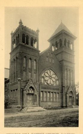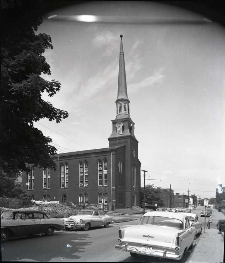 First Baptist Church is located on the corner of Eleventh and Court Street. It has been at that location since 1886, though it has been altered since its original construction. In 1941, the steeple was struck by lightning and was rebuilt. It is a replica of the original. A Lynchburg architect, Stanhope S. Johnson, also added an annex to the church in 1941 to provide space for Sunday schools. Despite these changes, the church is listed in the National Register of Historic Places because of its original foundation and impact. The First Baptist Church holds the oldest Baptist congregation in Lynchburg and influenced many events in Virginia Baptist sects. The congregation influenced the development of the Virginia Baptist Hospital, the creation of Eagle Eyrie as an assembly ground, and started the Baptist Young People’s Union of Virginia. The congregation is active today.