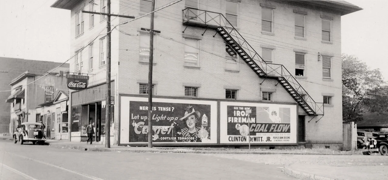 Humbles Building, 901 Fifth Street, circa 1940. Note the “Drug Store” sign for Fifth Street Pharmacy and the “Dr. R. W. Johnson” lettering in the second-floor windows.