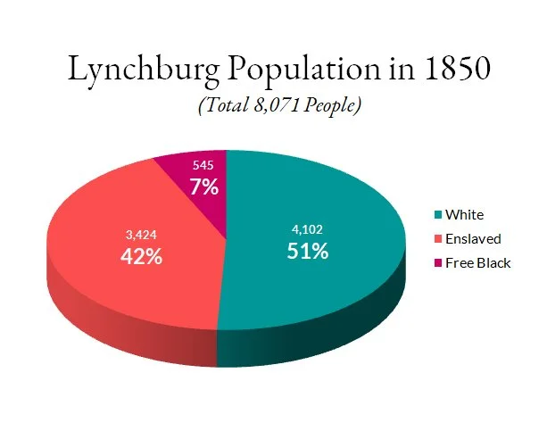 Between 1800 and 1860, there were nearly as many enslaved and free Black residents of Lynchburg as there were White.