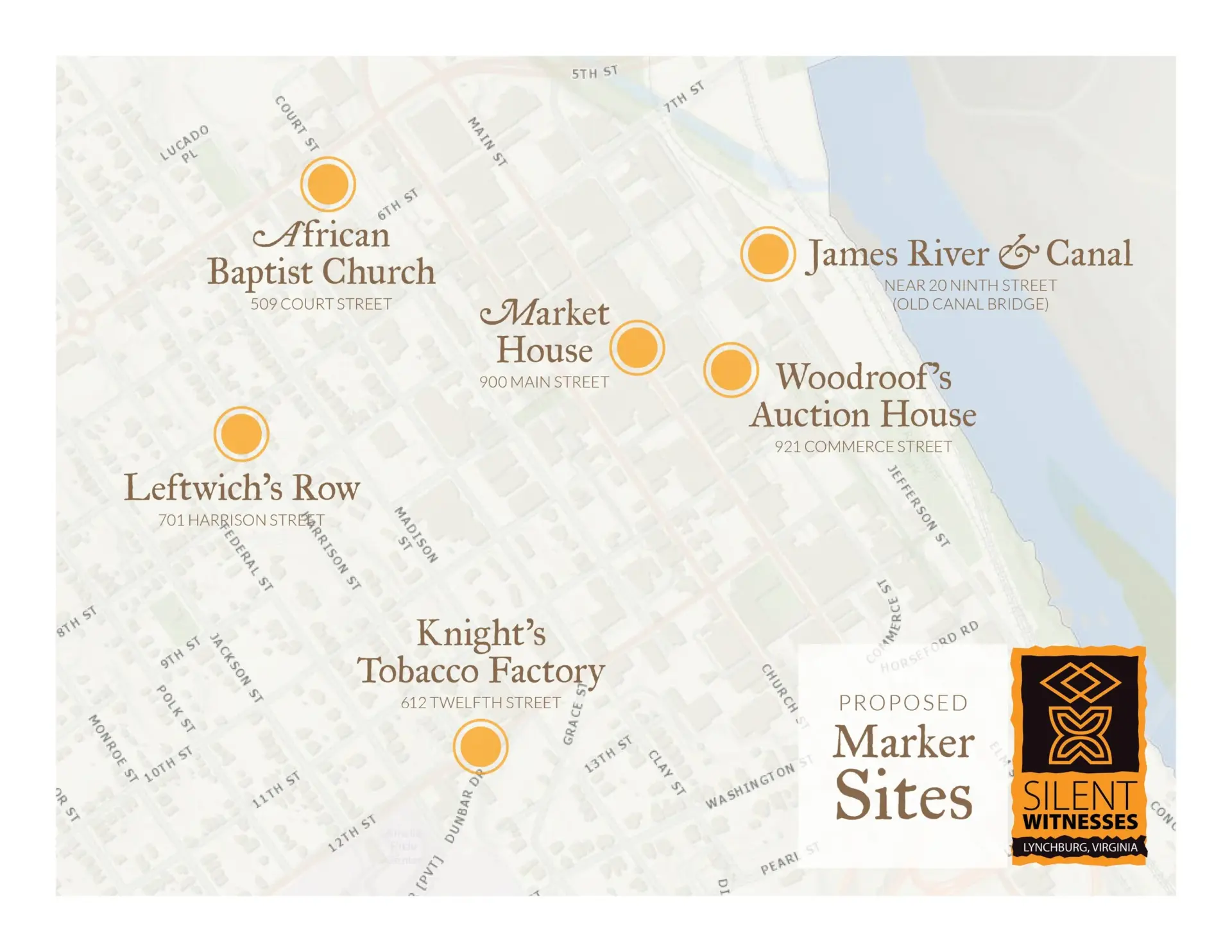 In 2024 six sites connected to slavery in Lynchburg were marked with an official Silent Witnesses plaque: